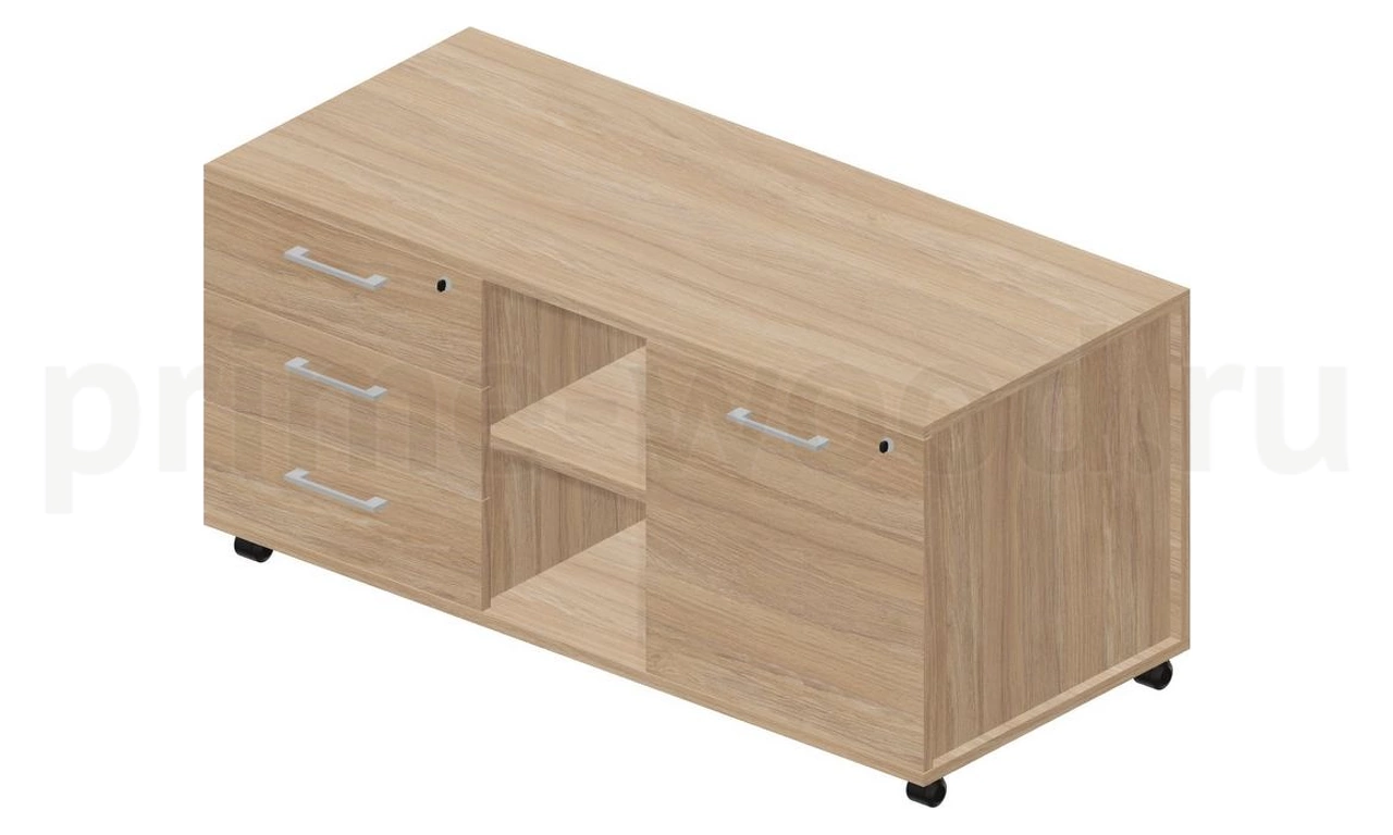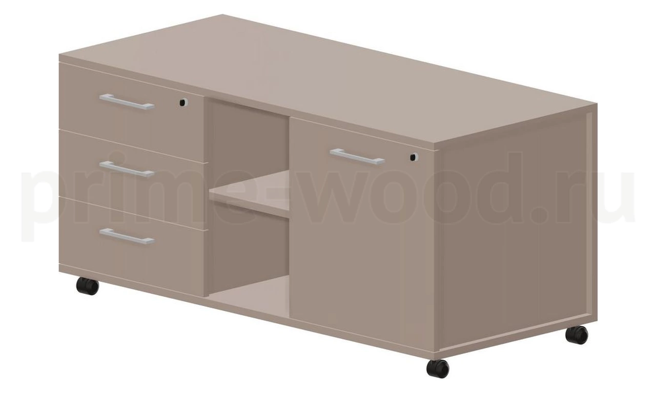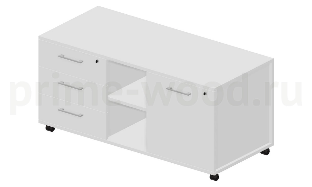 Тумба мобильная сервисная левая (3 секции, усиленные колёсные опоры, ручки - алюминий) 120х53х57см